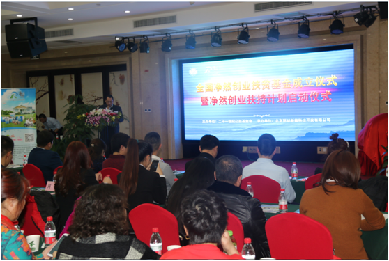 2016年1月21日,由二十一世紀公益基金會主辦,北京環球新能科技開發有限公司捐資設立的“全國凈然創業扶貧基金”正式啟動,二十一世紀公益基金會理事長呂軍鋒、秘書長燕東升、北京環球新能科技開發有限公司總經理及副總經理王敏等出席活動并講話。該基金旨在幫助有志于創業的殘疾人士、退伍軍人、大學生、下崗職工等社會各界群體。